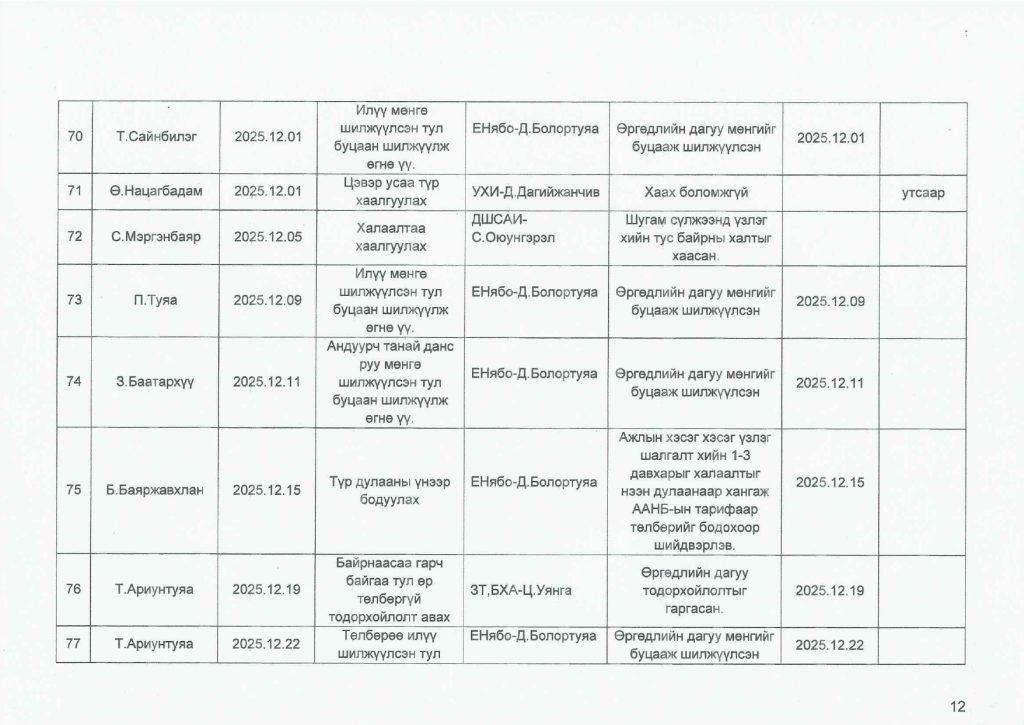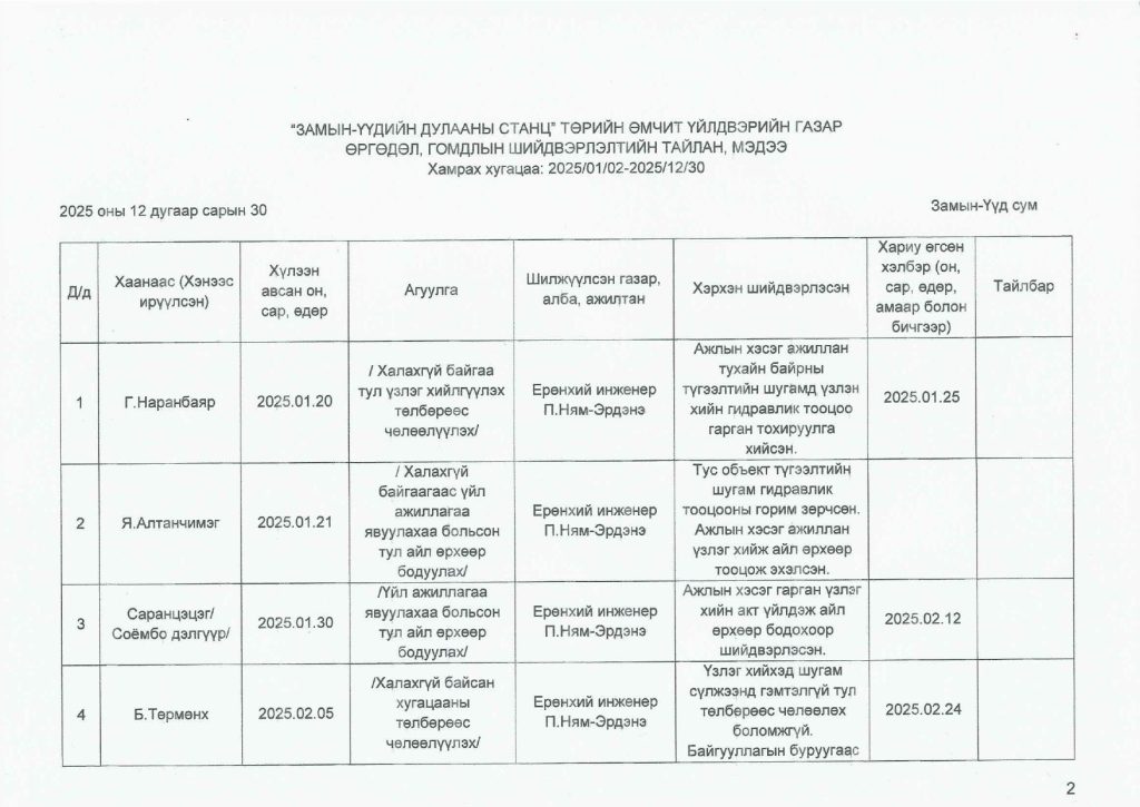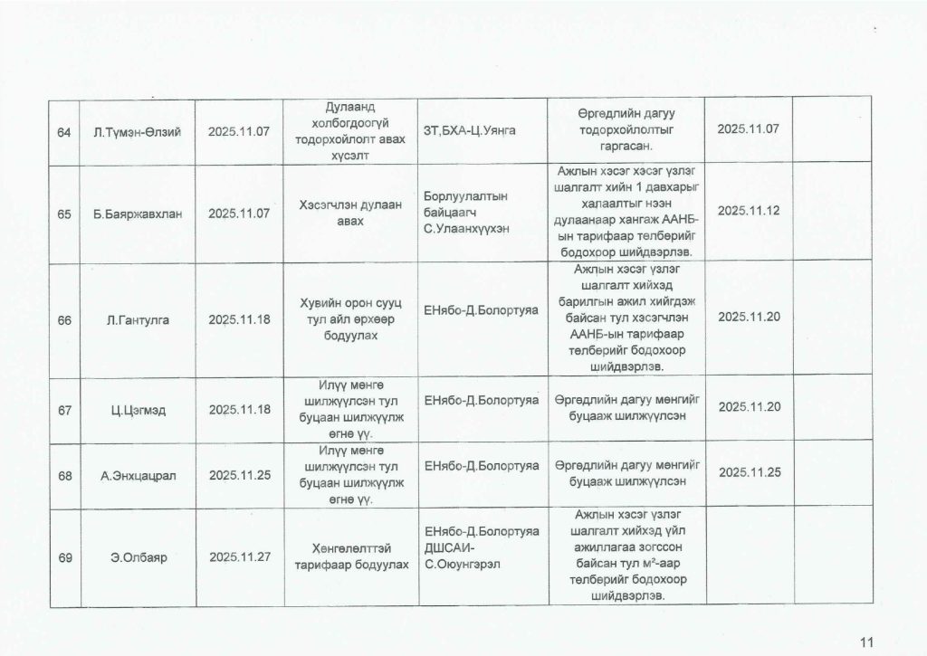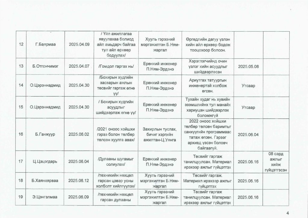 Өргөдөл гомдлын тайлан / 2025 оны 4-р улирал/