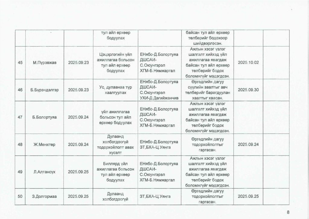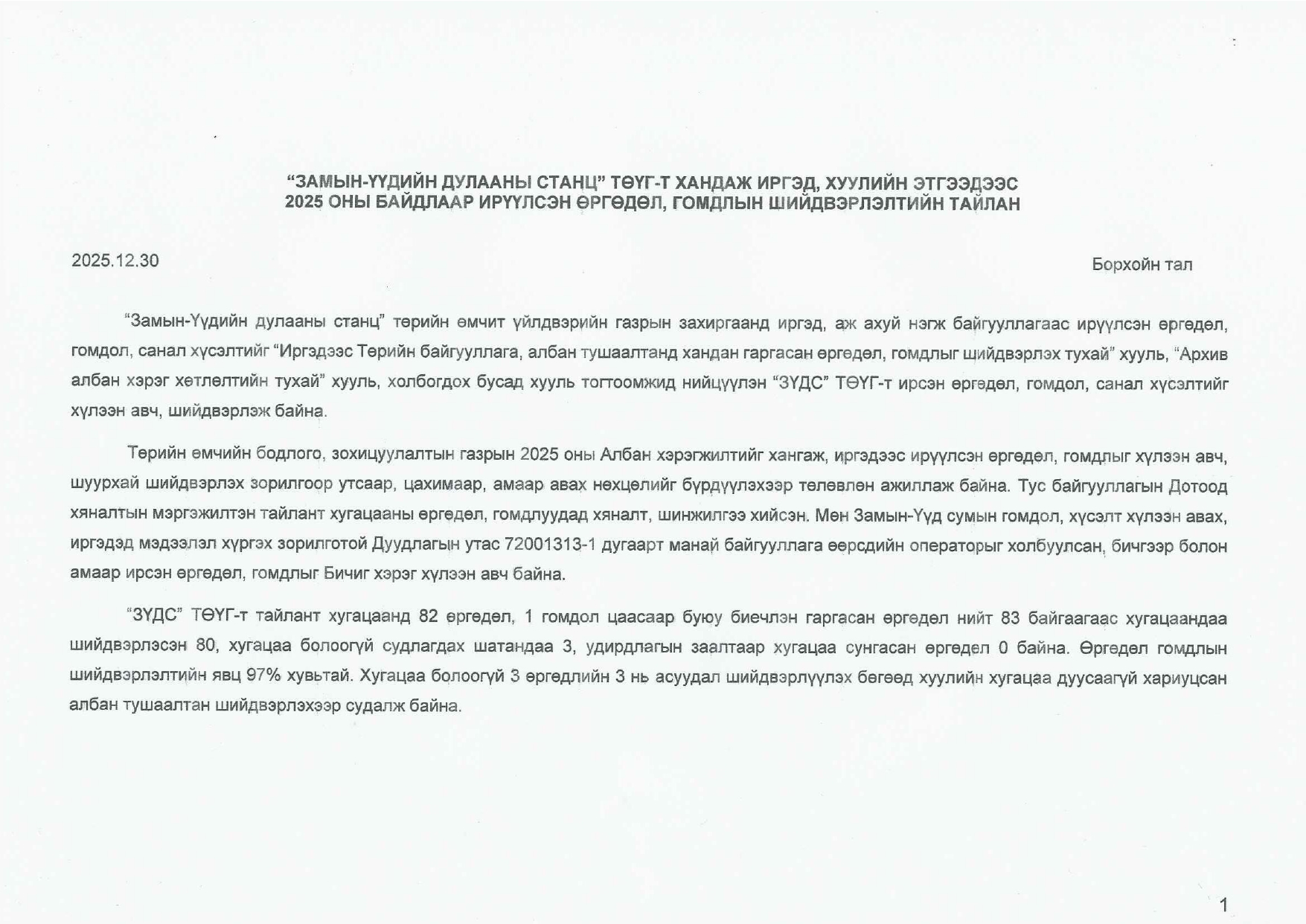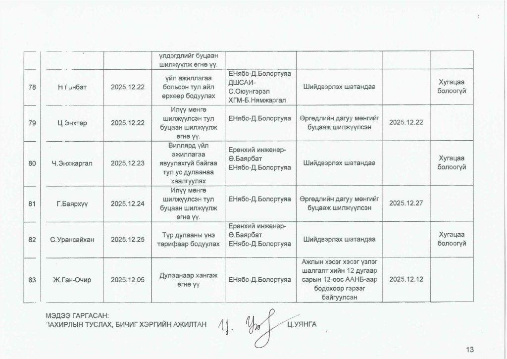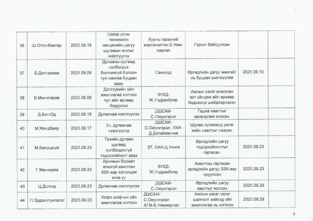 Өргөдөл гомдлын тайлан / 2025 оны 4-р улирал/
